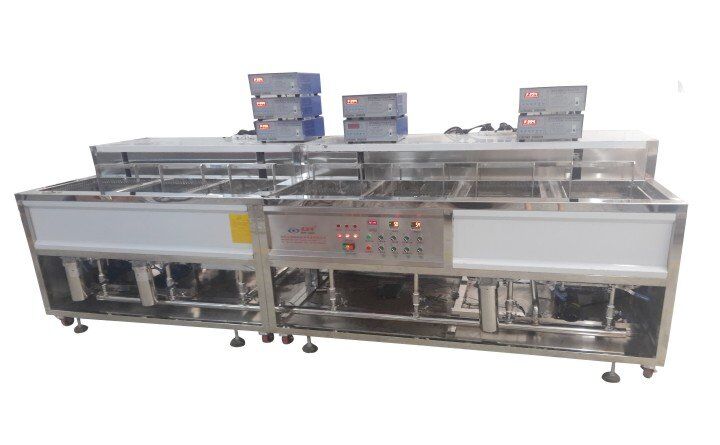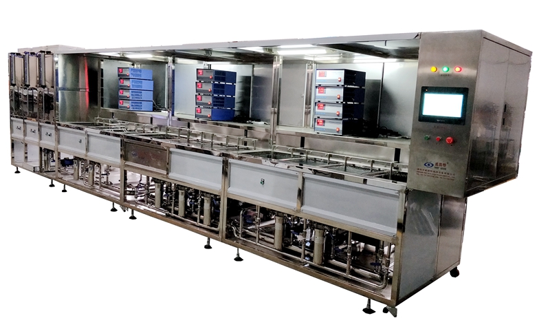深圳威固特VGT-1509FT角反射器光學超聲波清洗機設備共有15個功能槽,配置有拋動系統(tǒng)、循環(huán)過濾系統(tǒng)、自動恒溫系統(tǒng)、超聲波清洗系統(tǒng)、定時系統(tǒng)、框架系統(tǒng)、CO2滅火系統(tǒng)等。設備采用環(huán)保型水溶劑洗滌、純水漂洗,為環(huán)保型清洗系統(tǒng)。